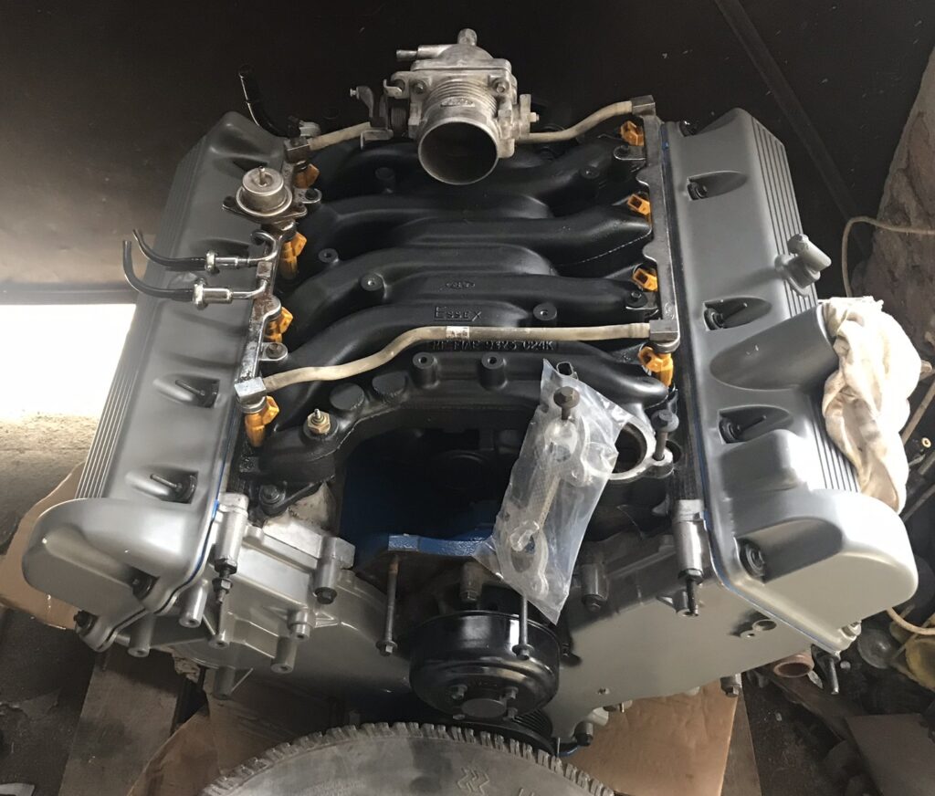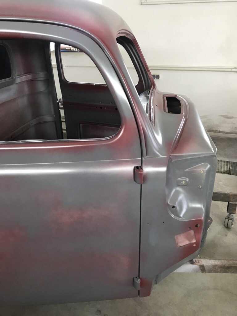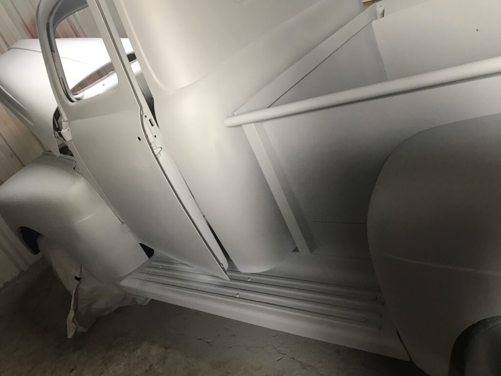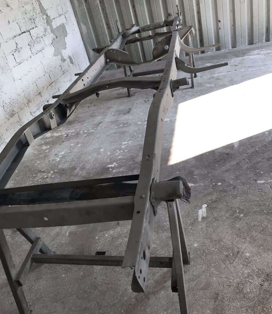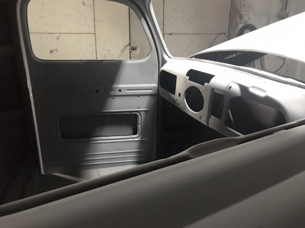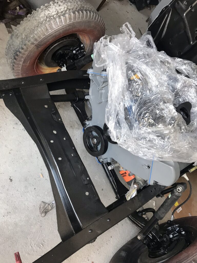 Wszystkie części przeznaczone do ponownego użytku zostały starannie wypiaskowane i zabezpieczone antykorozyjnie. W międzyczasie pojawił się pomysł, żeby zmienić silnik, ponieważ częstą wadą 239 Flathead był problem z przegrzewaniem się, który powodował pękanie bloku silnika – akurat trafiliśmy na wadliwy egzemplarz, nie chcąc ryzykować podobnej awarii zdecydowaliśmy się na swap silnika na nowszy. Zmodyfikowaliśmy również hamulce, ponieważ w oryginale z przodu były bębnowe, co mogłoby dawać niewystarczającą siłę hamowania przy nowszym, mocniejszym silniku. Zmiany te wymagały ogromnego nakładu prac, trzeba było od zera ręcznie dopasować inne hamulce oraz zaprojektować zupełnie nowe mocowanie silnika. Następnie cała instalacja elektryczna musiała zostać przeniesiona z samochodu ,,dawcy” i przystosowana do Forda F-1. Stwierdziliśmy również, że chcemy pick-upa pomalować w tzw. patynę.